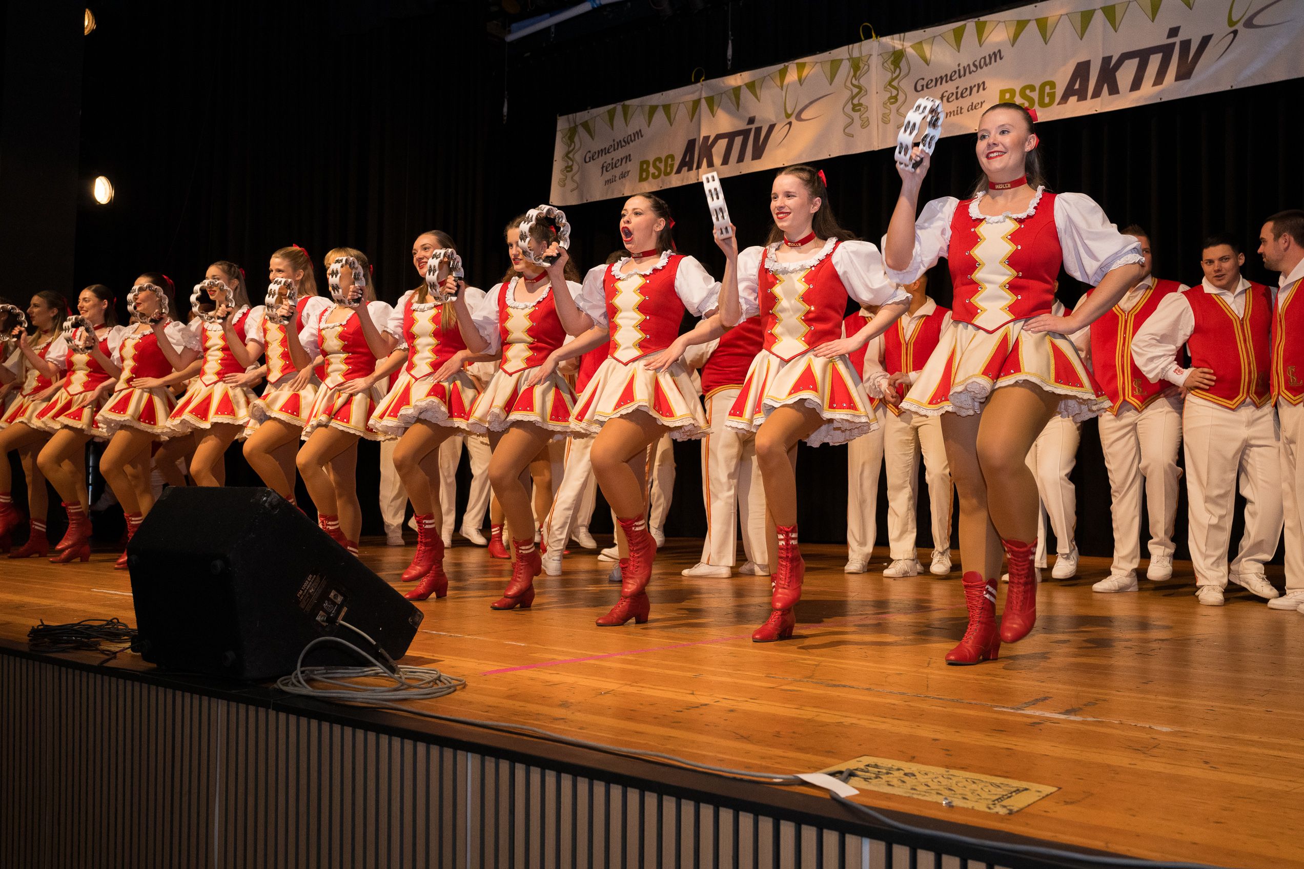 Auch 2026 war es wieder bewusst eine Wohnzimmersitzung mit rund 200 Gästen im großzügigen Saal der Festhalle Weisweiler – luftig und mit einem Publikum, das aufmerksam zuhört, aber auch mitgeht. Das Konzept ging erneut auf. Ein gut gelaunter und bestens über die auftretenden Künstler informierter Moderator führte durch das Programm, das traditionell aus Musik, Tanz und einer Büttenrede bestand. Eröffnet wurde das Programm von der Jugend des Garderegiments Weiß-Rot aus Eschweiler, angeführt von seiner souveränen Kinder-Präsidentin. Anschließend wurde es offiziell, Prinz Jürgen 1. Und sein Zeremonienmeister Pascal gaben sich mit Ihrem Gefolge die Ehre. Danach ging es weiter mit der Showtanzgruppe 4 step der Narrenzunft aus Eschweiler, die sich erst vor zwei Jahren gegründet hat, aber das Publikum mit der Darbietung und der Vielzahl der Tänzerinnen und Tänzer begeisterte. Als nächster Programmpunkt sorgten „Die Nothberger“ mit ihrem Entertrötment für phantastische Stimmung und holten das Publikum von den Stühlen. Etwas ruhiger ging es dann bei der Darbietung der Jugendtanzgruppe des TSC Gold Aachen weiter. Die Truppe, die mit ihrer Darbietung zurecht den Titel deutscher Vizemeister tragen darf, überzeugte mit einer einfühlsamen Darstellung.. Nach so viel hochklassigem Programm kam eine eingeplante Pause für mögliche Verzögerungen gerade recht. Durchatmen, die Kollegen und Bekannten am Nachbartisch begrüßen oder sich im Foyer stärken waren dann auch die hauptsächlichen Beschäftigungen der Gäste. Viel Zeit blieb jedoch nicht, der in Eschweiler noch nicht aufgetretene Büttenredner Björn Wassong alias „Ne Jeck im Rähn“ hatte das Publikum schnell wieder auf Betriebstemperatur und wurde mit Standing Ovations verabschiedet. Das TanzCorps Colonia Rut Wiess war bereits 2025 einer der Höhepunkte der BSG-Sitzung und konnte 2026 nahtlos an die grandiose Leistung anknüpfen. Akrobatik auf höchstem Niveau wurde vom Publikum mit langanhaltendem Applaus belohnt und wir sind sicher, dass diese Truppe nicht zum letzten Mal bei der BSG zu Gast war. Nach einer solchen Truppe aufzutreten ist nicht einfach, aber die Gesangstruppe „Bremsklötz“ aus Inden-Altdorf meisterte diese Herausforderung souverän. Die drei Herren sangen sich im und mit dem Publikum quer durch die bekanntesten Karnevalslieder der letzten Jahrzehnte und kamen ebenfalls nicht ohne Zugabe von der Bühne. Nach den Bremsklötz zog die Ehrengarde Köln 1902 e.V. auf und zeigte, dass man eine eigene Veranstaltung in Köln und einen zahlenmäßig großen Auftritt in Weisweiler durchaus parallel bestreiten kann. Die Referenz ans Publikum sowie die musikalischen und tänzerischen Darbietungen begeisterten das Publikum. Den Schlussakkord setzte dann wiederum das Tanzcorps Höppe Kroetsch, in deren Wohnzimmer die Sitzung stattfand. Mit gleich drei Tänzen begeisterte das Tanzcorps das Publikum und hielt die Stimmung bis zum Schluss hoch. Zum Ausmarsch wurde der Moderator noch zum Standartenträger gemacht und konnte somit standesgemäß die Bühne in Begleitung verlassen.