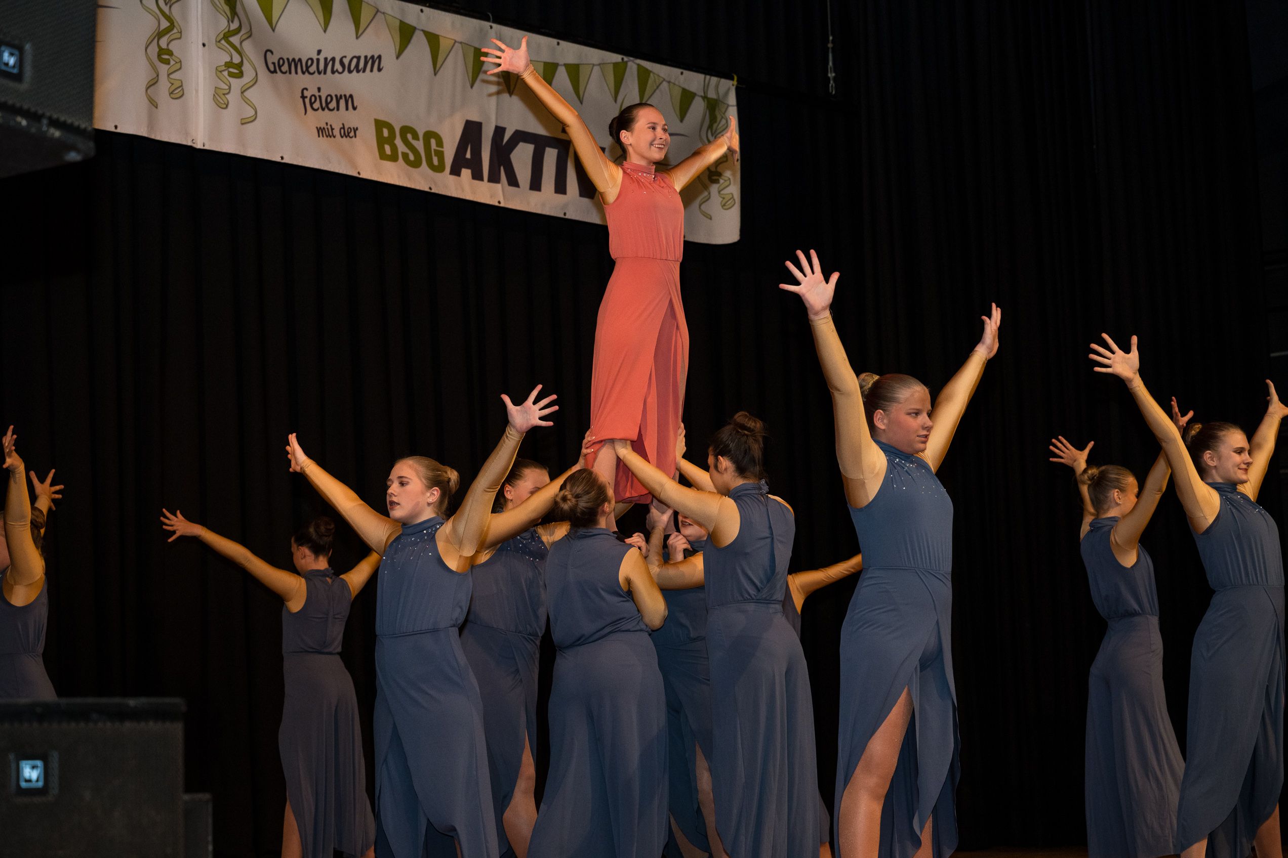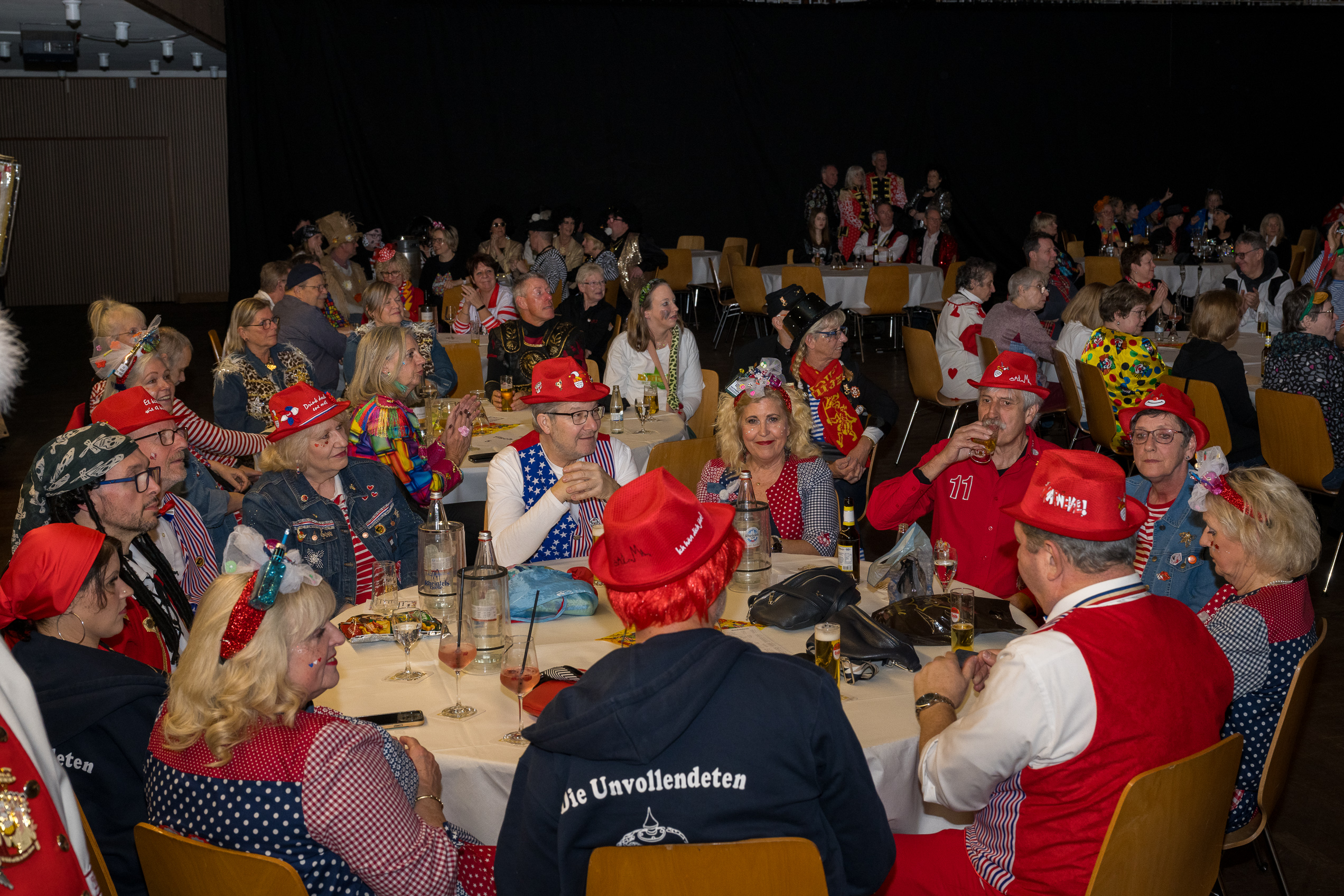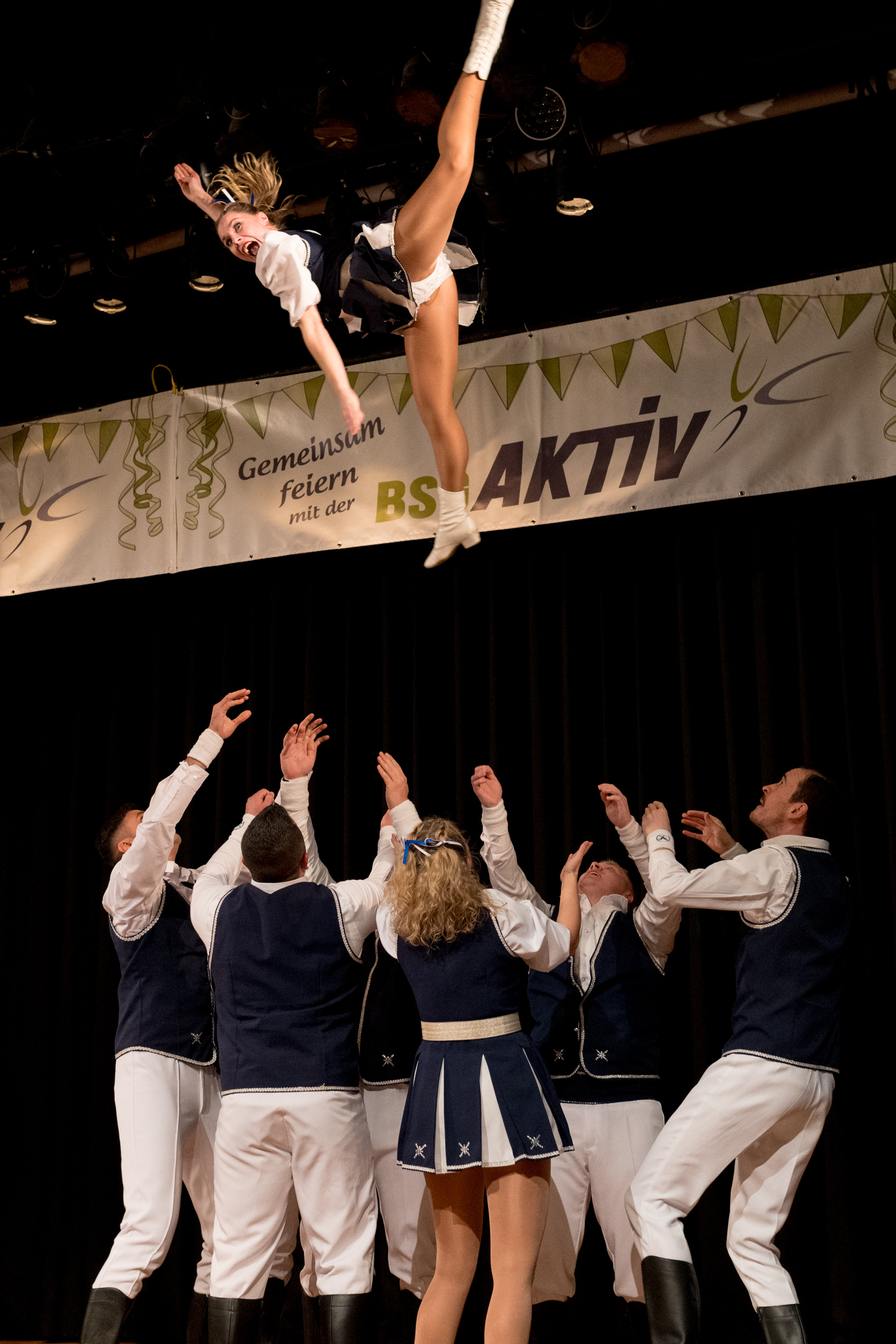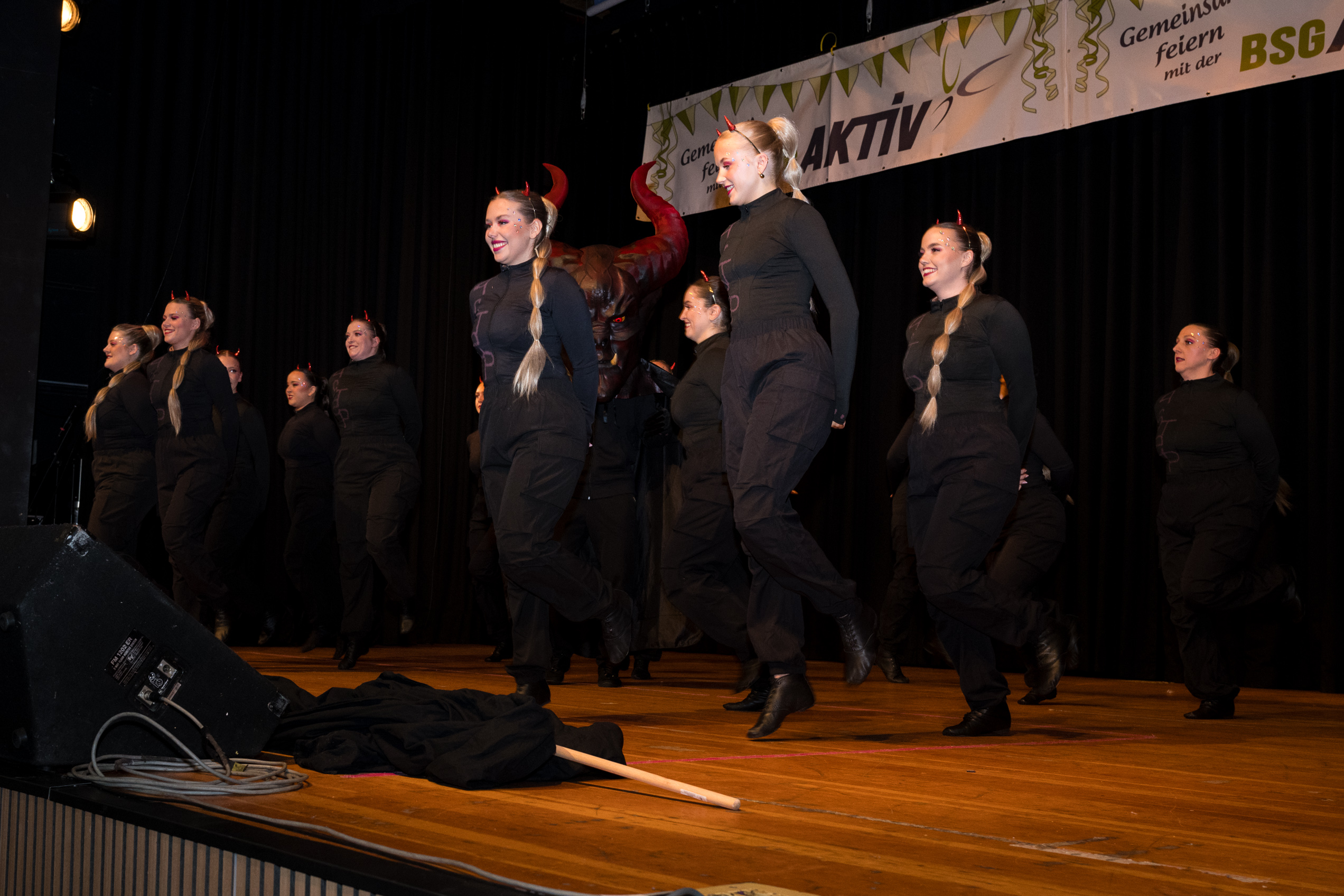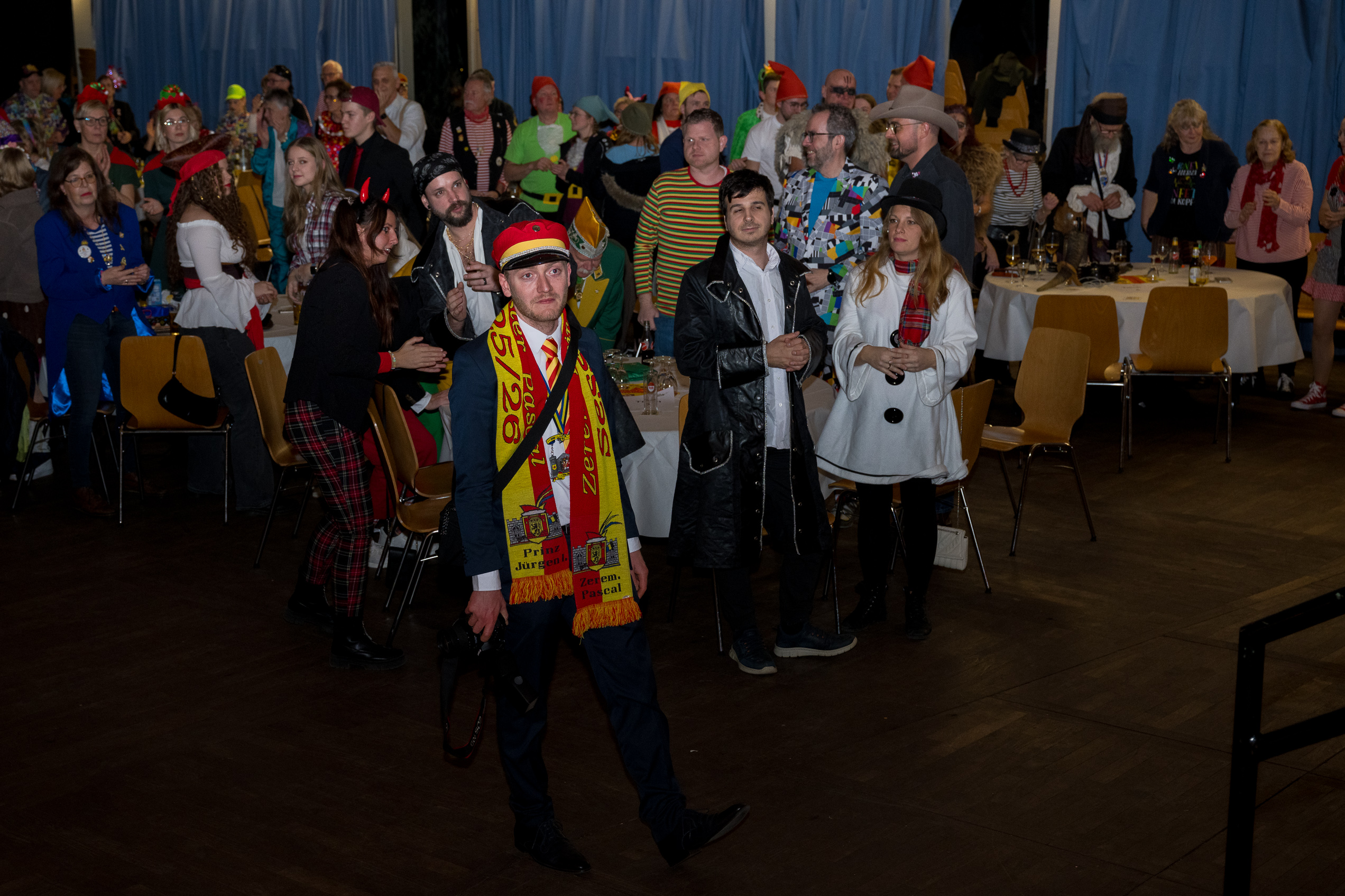 Auch 2026 war es wieder bewusst eine Wohnzimmersitzung mit rund 200 Gästen im großzügigen Saal der Festhalle Weisweiler – luftig und mit einem Publikum, das aufmerksam zuhört, aber auch mitgeht. Das Konzept ging erneut auf. Ein gut gelaunter und bestens über die auftretenden Künstler informierter Moderator führte durch das Programm, das traditionell aus Musik, Tanz und einer Büttenrede bestand. Eröffnet wurde das Programm von der Jugend des Garderegiments Weiß-Rot aus Eschweiler, angeführt von seiner souveränen Kinder-Präsidentin. Anschließend wurde es offiziell, Prinz Jürgen 1. Und sein Zeremonienmeister Pascal gaben sich mit Ihrem Gefolge die Ehre. Danach ging es weiter mit der Showtanzgruppe 4 step der Narrenzunft aus Eschweiler, die sich erst vor zwei Jahren gegründet hat, aber das Publikum mit der Darbietung und der Vielzahl der Tänzerinnen und Tänzer begeisterte. Als nächster Programmpunkt sorgten „Die Nothberger“ mit ihrem Entertrötment für phantastische Stimmung und holten das Publikum von den Stühlen. Etwas ruhiger ging es dann bei der Darbietung der Jugendtanzgruppe des TSC Gold Aachen weiter. Die Truppe, die mit ihrer Darbietung zurecht den Titel deutscher Vizemeister tragen darf, überzeugte mit einer einfühlsamen Darstellung.. Nach so viel hochklassigem Programm kam eine eingeplante Pause für mögliche Verzögerungen gerade recht. Durchatmen, die Kollegen und Bekannten am Nachbartisch begrüßen oder sich im Foyer stärken waren dann auch die hauptsächlichen Beschäftigungen der Gäste. Viel Zeit blieb jedoch nicht, der in Eschweiler noch nicht aufgetretene Büttenredner Björn Wassong alias „Ne Jeck im Rähn“ hatte das Publikum schnell wieder auf Betriebstemperatur und wurde mit Standing Ovations verabschiedet. Das TanzCorps Colonia Rut Wiess war bereits 2025 einer der Höhepunkte der BSG-Sitzung und konnte 2026 nahtlos an die grandiose Leistung anknüpfen. Akrobatik auf höchstem Niveau wurde vom Publikum mit langanhaltendem Applaus belohnt und wir sind sicher, dass diese Truppe nicht zum letzten Mal bei der BSG zu Gast war. Nach einer solchen Truppe aufzutreten ist nicht einfach, aber die Gesangstruppe „Bremsklötz“ aus Inden-Altdorf meisterte diese Herausforderung souverän. Die drei Herren sangen sich im und mit dem Publikum quer durch die bekanntesten Karnevalslieder der letzten Jahrzehnte und kamen ebenfalls nicht ohne Zugabe von der Bühne. Nach den Bremsklötz zog die Ehrengarde Köln 1902 e.V. auf und zeigte, dass man eine eigene Veranstaltung in Köln und einen zahlenmäßig großen Auftritt in Weisweiler durchaus parallel bestreiten kann. Die Referenz ans Publikum sowie die musikalischen und tänzerischen Darbietungen begeisterten das Publikum. Den Schlussakkord setzte dann wiederum das Tanzcorps Höppe Kroetsch, in deren Wohnzimmer die Sitzung stattfand. Mit gleich drei Tänzen begeisterte das Tanzcorps das Publikum und hielt die Stimmung bis zum Schluss hoch. Zum Ausmarsch wurde der Moderator noch zum Standartenträger gemacht und konnte somit standesgemäß die Bühne in Begleitung verlassen.