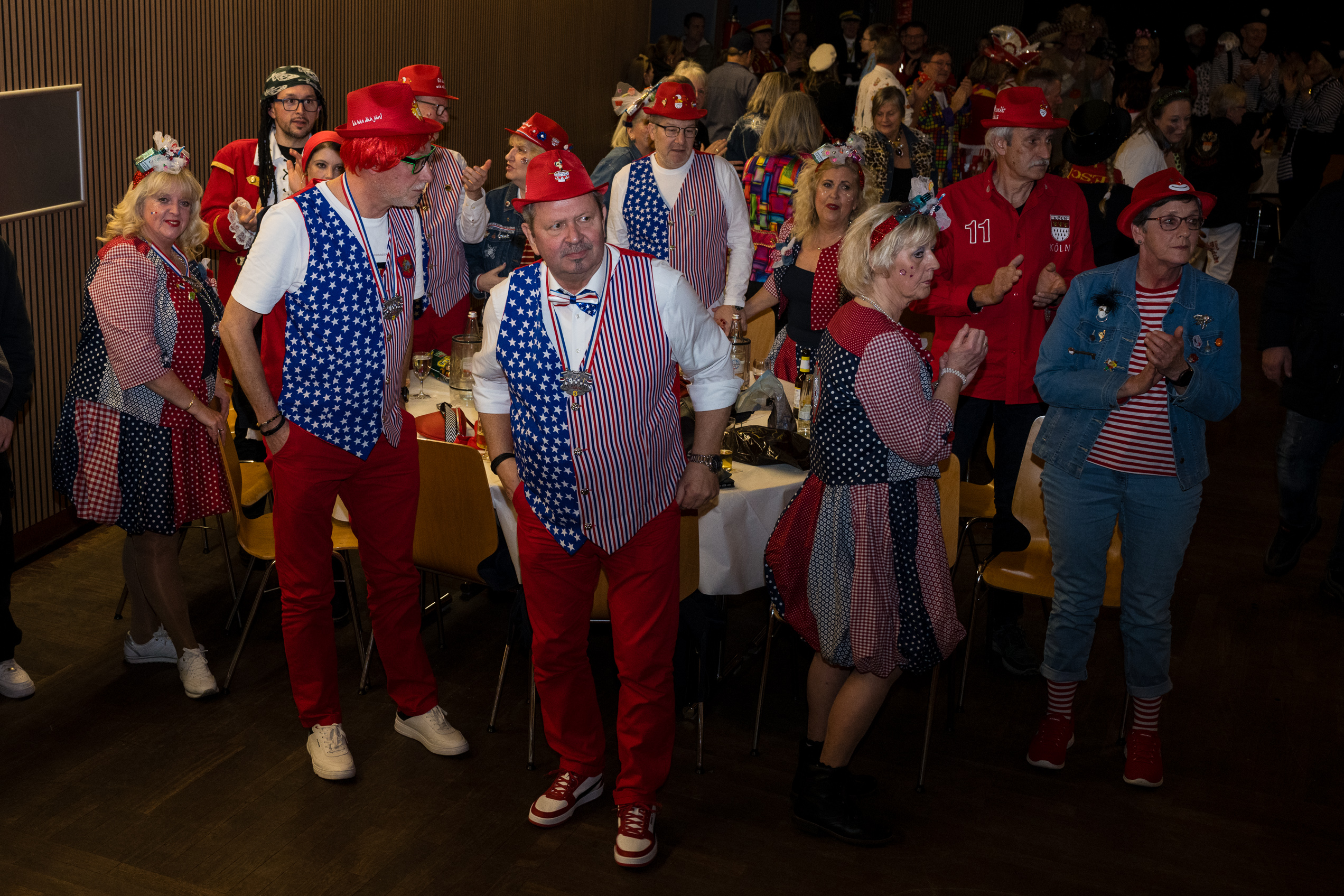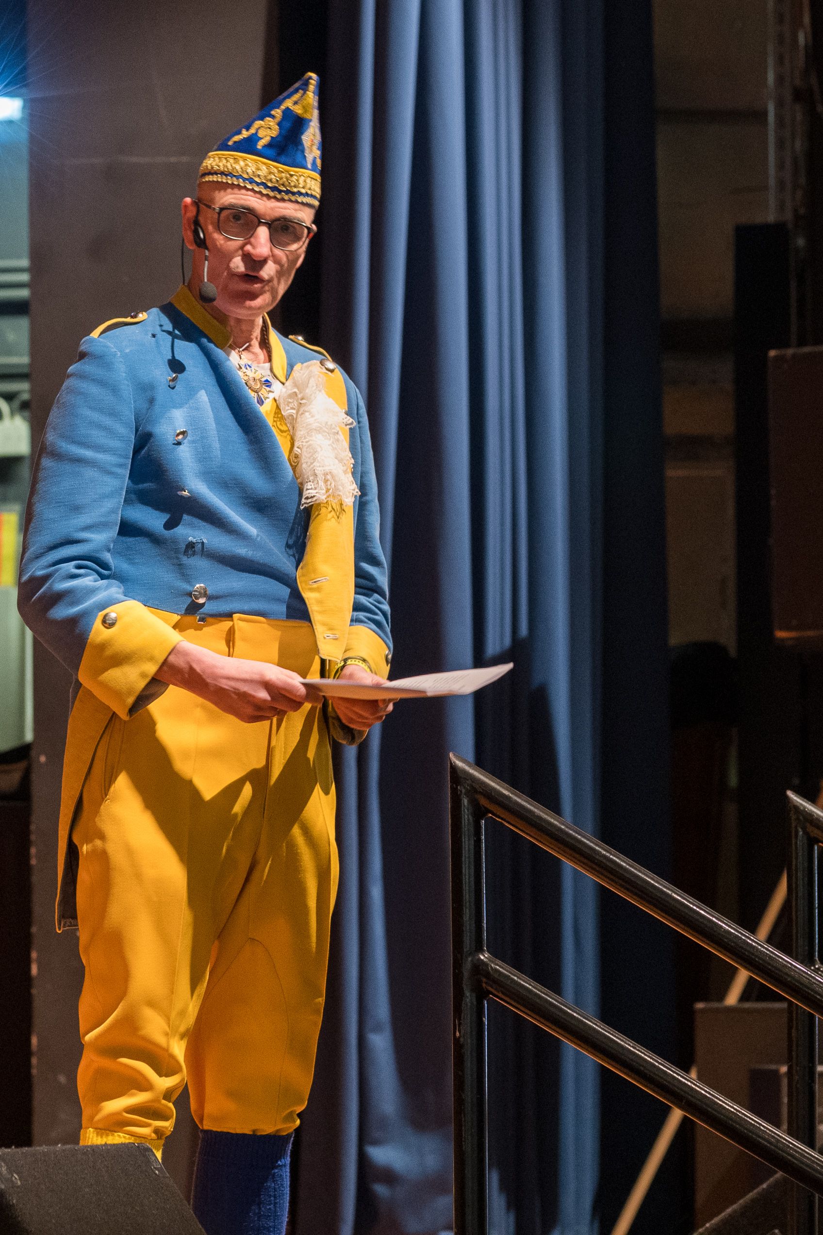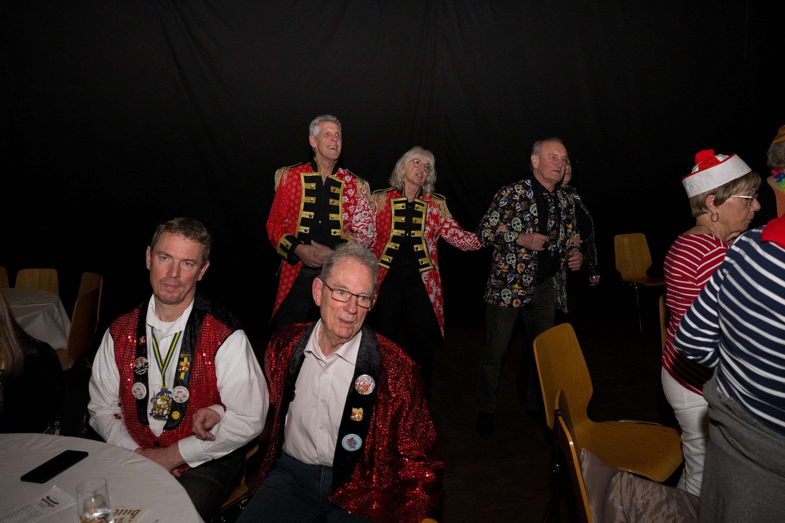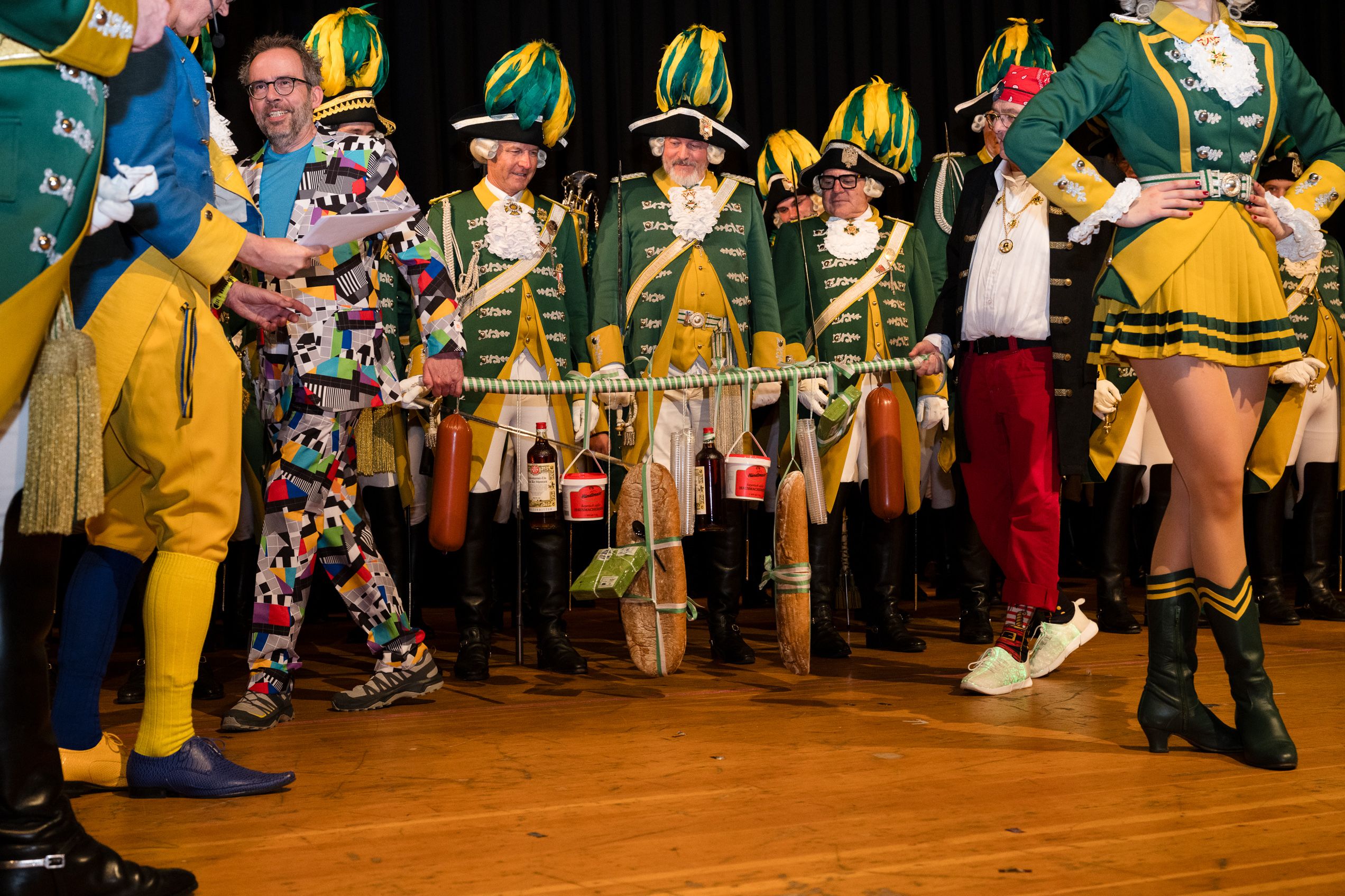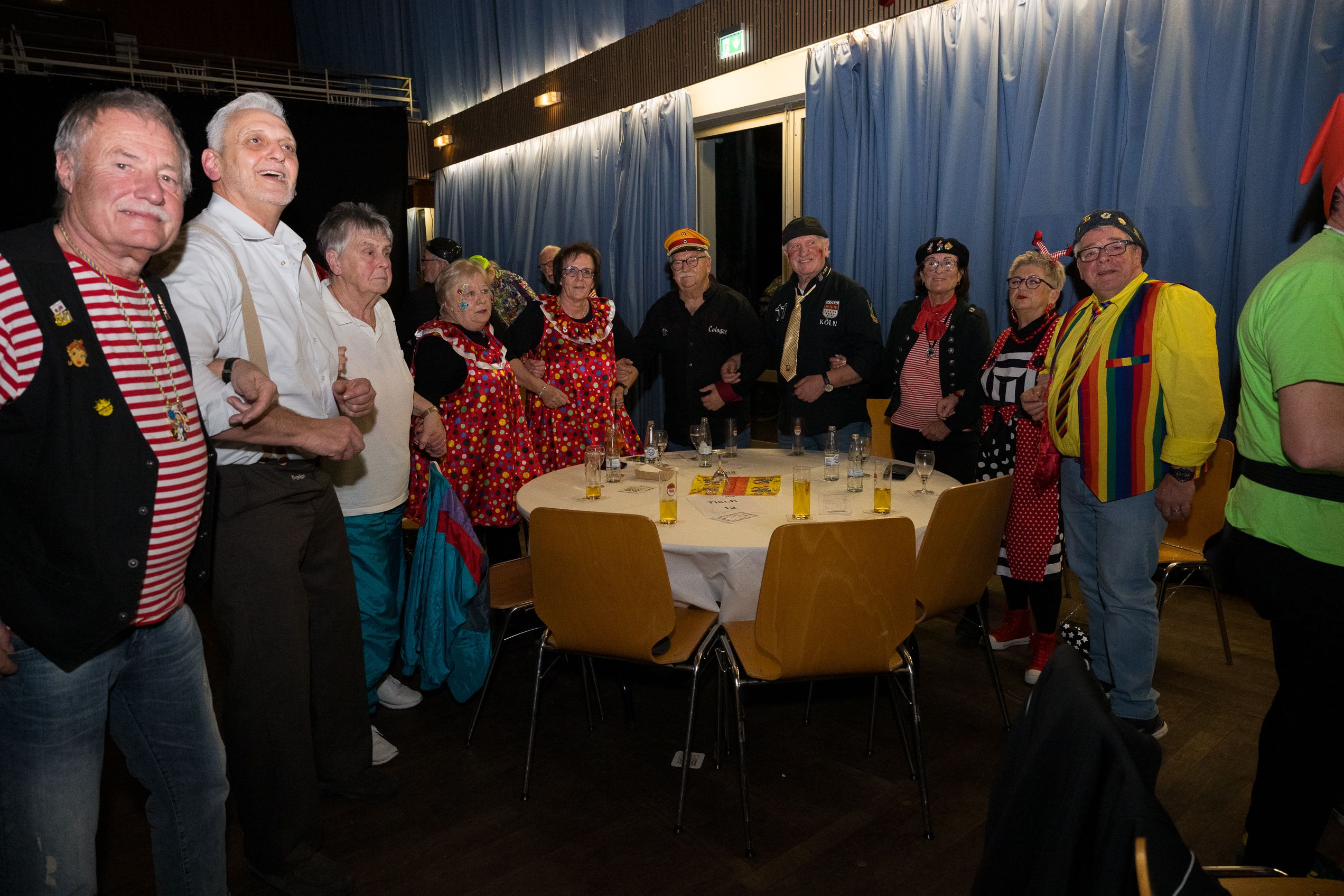 Auch 2026 war es wieder bewusst eine Wohnzimmersitzung mit rund 200 Gästen im großzügigen Saal der Festhalle Weisweiler – luftig und mit einem Publikum, das aufmerksam zuhört, aber auch mitgeht. Das Konzept ging erneut auf. Ein gut gelaunter und bestens über die auftretenden Künstler informierter Moderator führte durch das Programm, das traditionell aus Musik, Tanz und einer Büttenrede bestand. Eröffnet wurde das Programm von der Jugend des Garderegiments Weiß-Rot aus Eschweiler, angeführt von seiner souveränen Kinder-Präsidentin. Anschließend wurde es offiziell, Prinz Jürgen 1. Und sein Zeremonienmeister Pascal gaben sich mit Ihrem Gefolge die Ehre. Danach ging es weiter mit der Showtanzgruppe 4 step der Narrenzunft aus Eschweiler, die sich erst vor zwei Jahren gegründet hat, aber das Publikum mit der Darbietung und der Vielzahl der Tänzerinnen und Tänzer begeisterte. Als nächster Programmpunkt sorgten „Die Nothberger“ mit ihrem Entertrötment für phantastische Stimmung und holten das Publikum von den Stühlen. Etwas ruhiger ging es dann bei der Darbietung der Jugendtanzgruppe des TSC Gold Aachen weiter. Die Truppe, die mit ihrer Darbietung zurecht den Titel deutscher Vizemeister tragen darf, überzeugte mit einer einfühlsamen Darstellung.. Nach so viel hochklassigem Programm kam eine eingeplante Pause für mögliche Verzögerungen gerade recht. Durchatmen, die Kollegen und Bekannten am Nachbartisch begrüßen oder sich im Foyer stärken waren dann auch die hauptsächlichen Beschäftigungen der Gäste. Viel Zeit blieb jedoch nicht, der in Eschweiler noch nicht aufgetretene Büttenredner Björn Wassong alias „Ne Jeck im Rähn“ hatte das Publikum schnell wieder auf Betriebstemperatur und wurde mit Standing Ovations verabschiedet. Das TanzCorps Colonia Rut Wiess war bereits 2025 einer der Höhepunkte der BSG-Sitzung und konnte 2026 nahtlos an die grandiose Leistung anknüpfen. Akrobatik auf höchstem Niveau wurde vom Publikum mit langanhaltendem Applaus belohnt und wir sind sicher, dass diese Truppe nicht zum letzten Mal bei der BSG zu Gast war. Nach einer solchen Truppe aufzutreten ist nicht einfach, aber die Gesangstruppe „Bremsklötz“ aus Inden-Altdorf meisterte diese Herausforderung souverän. Die drei Herren sangen sich im und mit dem Publikum quer durch die bekanntesten Karnevalslieder der letzten Jahrzehnte und kamen ebenfalls nicht ohne Zugabe von der Bühne. Nach den Bremsklötz zog die Ehrengarde Köln 1902 e.V. auf und zeigte, dass man eine eigene Veranstaltung in Köln und einen zahlenmäßig großen Auftritt in Weisweiler durchaus parallel bestreiten kann. Die Referenz ans Publikum sowie die musikalischen und tänzerischen Darbietungen begeisterten das Publikum. Den Schlussakkord setzte dann wiederum das Tanzcorps Höppe Kroetsch, in deren Wohnzimmer die Sitzung stattfand. Mit gleich drei Tänzen begeisterte das Tanzcorps das Publikum und hielt die Stimmung bis zum Schluss hoch. Zum Ausmarsch wurde der Moderator noch zum Standartenträger gemacht und konnte somit standesgemäß die Bühne in Begleitung verlassen.