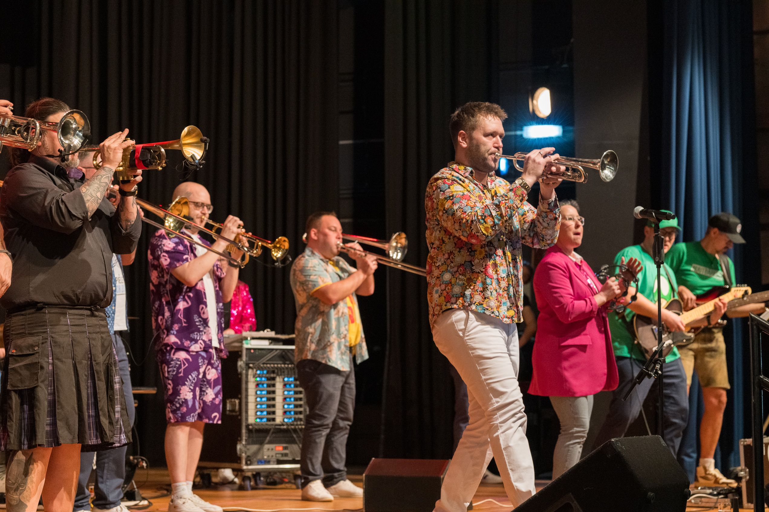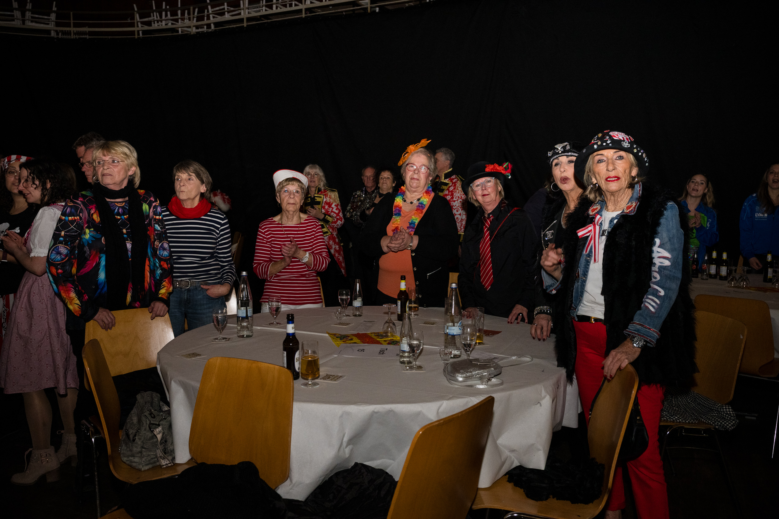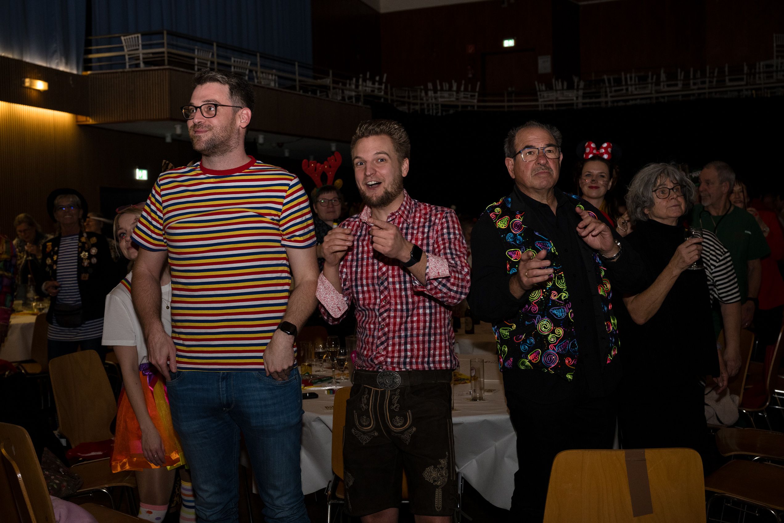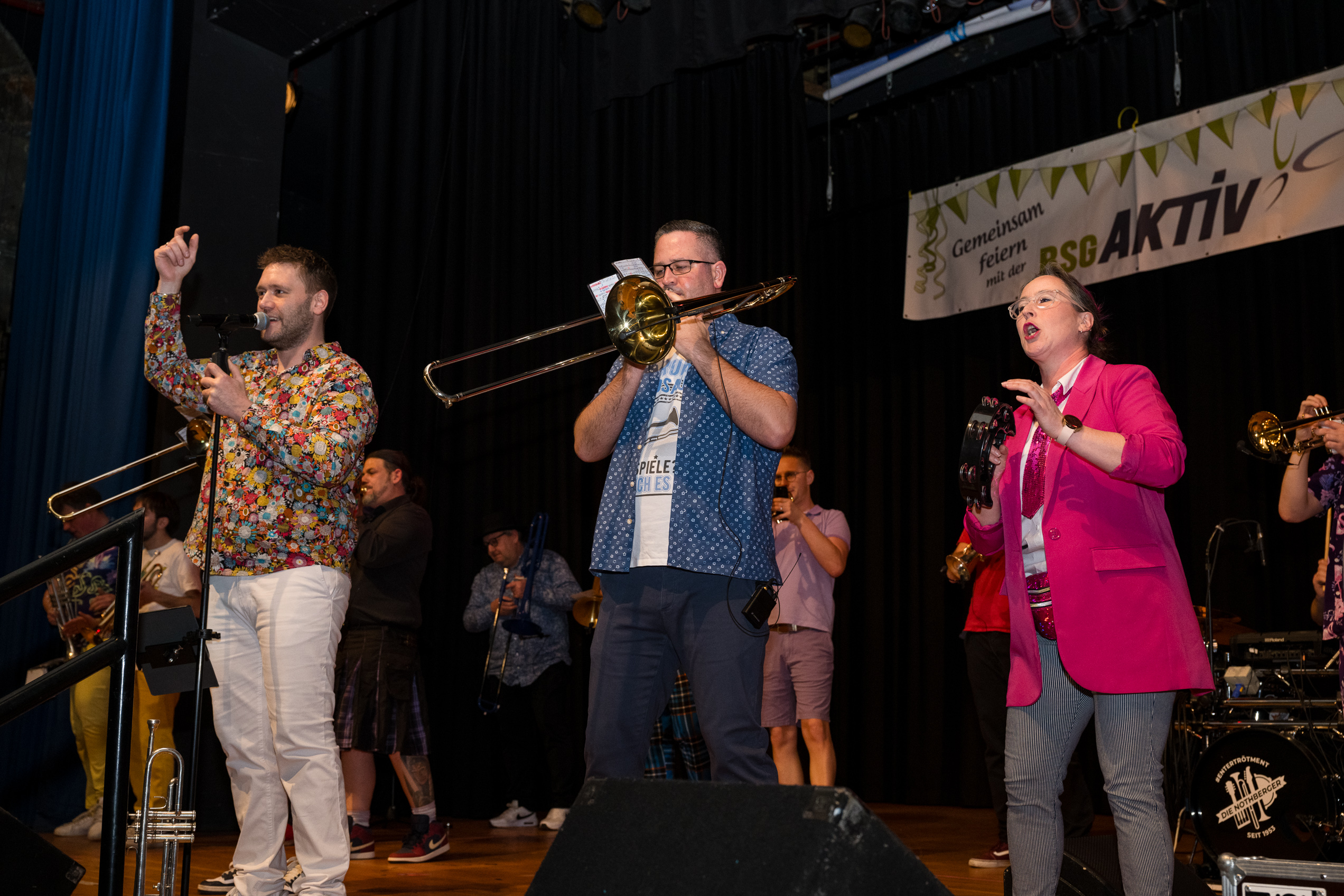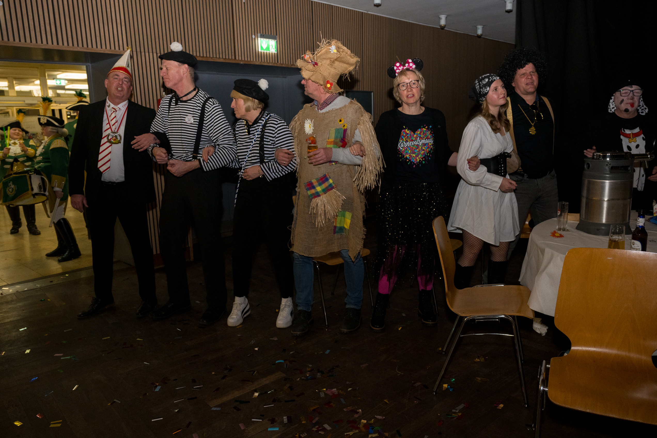 Auch 2026 war es wieder bewusst eine Wohnzimmersitzung mit rund 200 Gästen im großzügigen Saal der Festhalle Weisweiler – luftig und mit einem Publikum, das aufmerksam zuhört, aber auch mitgeht. Das Konzept ging erneut auf. Ein gut gelaunter und bestens über die auftretenden Künstler informierter Moderator führte durch das Programm, das traditionell aus Musik, Tanz und einer Büttenrede bestand. Eröffnet wurde das Programm von der Jugend des Garderegiments Weiß-Rot aus Eschweiler, angeführt von seiner souveränen Kinder-Präsidentin. Anschließend wurde es offiziell, Prinz Jürgen 1. Und sein Zeremonienmeister Pascal gaben sich mit Ihrem Gefolge die Ehre. Danach ging es weiter mit der Showtanzgruppe 4 step der Narrenzunft aus Eschweiler, die sich erst vor zwei Jahren gegründet hat, aber das Publikum mit der Darbietung und der Vielzahl der Tänzerinnen und Tänzer begeisterte. Als nächster Programmpunkt sorgten „Die Nothberger“ mit ihrem Entertrötment für phantastische Stimmung und holten das Publikum von den Stühlen. Etwas ruhiger ging es dann bei der Darbietung der Jugendtanzgruppe des TSC Gold Aachen weiter. Die Truppe, die mit ihrer Darbietung zurecht den Titel deutscher Vizemeister tragen darf, überzeugte mit einer einfühlsamen Darstellung.. Nach so viel hochklassigem Programm kam eine eingeplante Pause für mögliche Verzögerungen gerade recht. Durchatmen, die Kollegen und Bekannten am Nachbartisch begrüßen oder sich im Foyer stärken waren dann auch die hauptsächlichen Beschäftigungen der Gäste. Viel Zeit blieb jedoch nicht, der in Eschweiler noch nicht aufgetretene Büttenredner Björn Wassong alias „Ne Jeck im Rähn“ hatte das Publikum schnell wieder auf Betriebstemperatur und wurde mit Standing Ovations verabschiedet. Das TanzCorps Colonia Rut Wiess war bereits 2025 einer der Höhepunkte der BSG-Sitzung und konnte 2026 nahtlos an die grandiose Leistung anknüpfen. Akrobatik auf höchstem Niveau wurde vom Publikum mit langanhaltendem Applaus belohnt und wir sind sicher, dass diese Truppe nicht zum letzten Mal bei der BSG zu Gast war. Nach einer solchen Truppe aufzutreten ist nicht einfach, aber die Gesangstruppe „Bremsklötz“ aus Inden-Altdorf meisterte diese Herausforderung souverän. Die drei Herren sangen sich im und mit dem Publikum quer durch die bekanntesten Karnevalslieder der letzten Jahrzehnte und kamen ebenfalls nicht ohne Zugabe von der Bühne. Nach den Bremsklötz zog die Ehrengarde Köln 1902 e.V. auf und zeigte, dass man eine eigene Veranstaltung in Köln und einen zahlenmäßig großen Auftritt in Weisweiler durchaus parallel bestreiten kann. Die Referenz ans Publikum sowie die musikalischen und tänzerischen Darbietungen begeisterten das Publikum. Den Schlussakkord setzte dann wiederum das Tanzcorps Höppe Kroetsch, in deren Wohnzimmer die Sitzung stattfand. Mit gleich drei Tänzen begeisterte das Tanzcorps das Publikum und hielt die Stimmung bis zum Schluss hoch. Zum Ausmarsch wurde der Moderator noch zum Standartenträger gemacht und konnte somit standesgemäß die Bühne in Begleitung verlassen.
